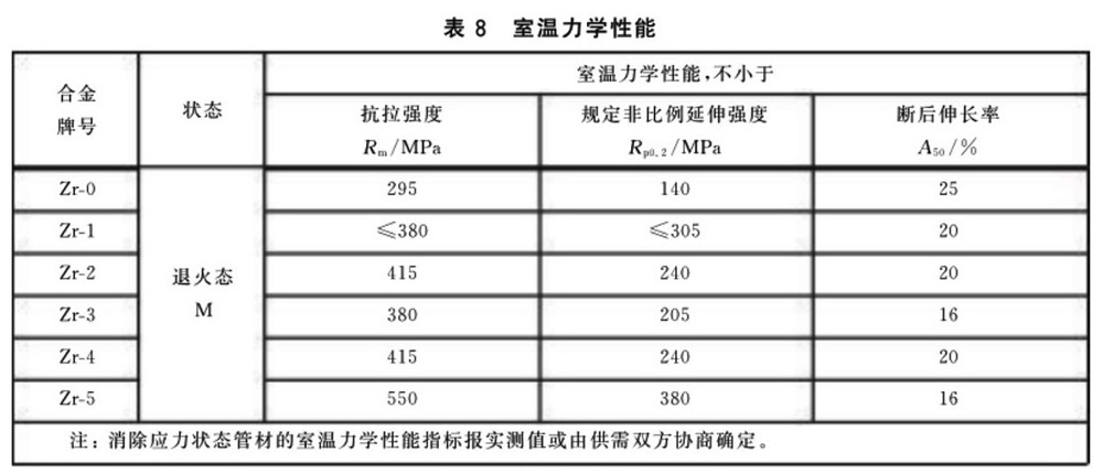 3.4.1 管材的室溫力學性能應符合表8的規定。